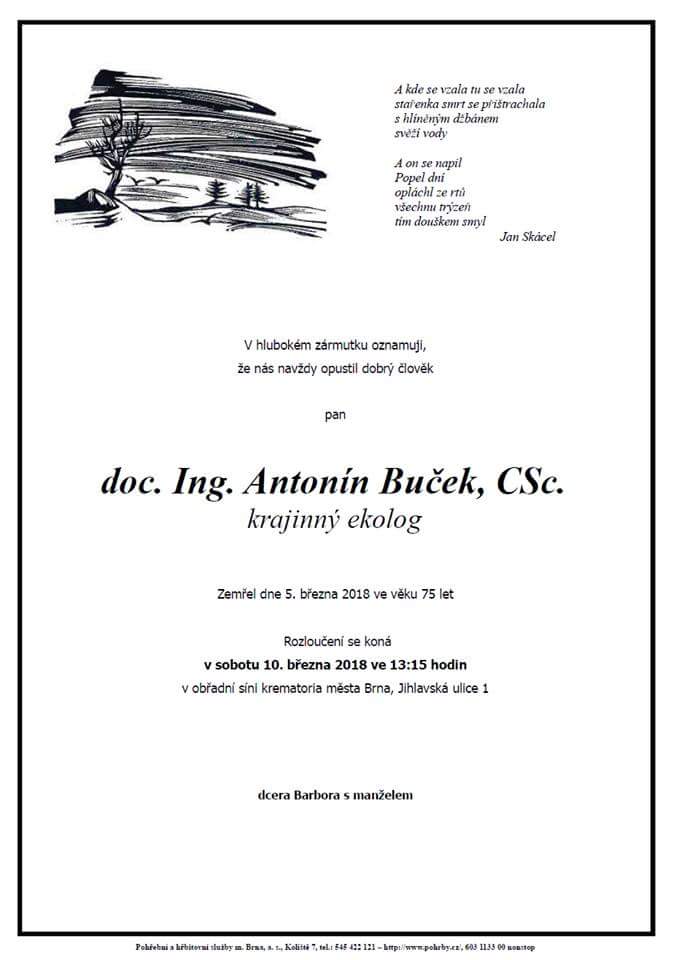 S lítostí oznamujeme, že v noci 5. března 2018 odešel ze světa nestor brněnských ochránců přírody a krajinný ekolog doc. Ing. Antonín Buček, CSc., který byl také dlouhá léta členem Strany Zelených na Brně střed.